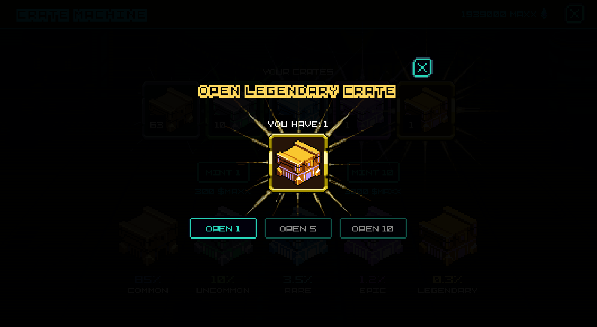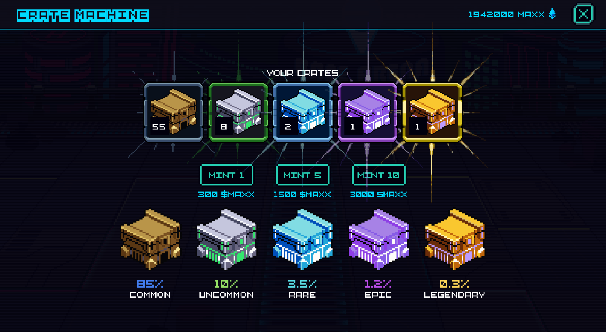 * Mint Crates in-game burning $MAXX. There is no limit.